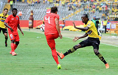 Durante los primeros segundos del partido, los dos equipos buscando posesionarse del balón en medio campo.
