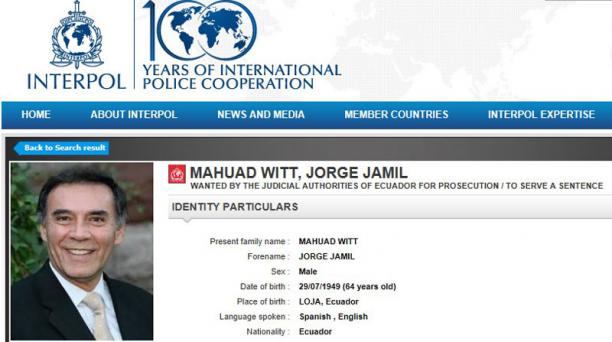 El ministro del Interior José Serrano informó hoy 27 de mayo que la Policía Internacional (Interpol) emitió difusión roja en contra del expresidente ecuatoriano Jamil Mahuad.
